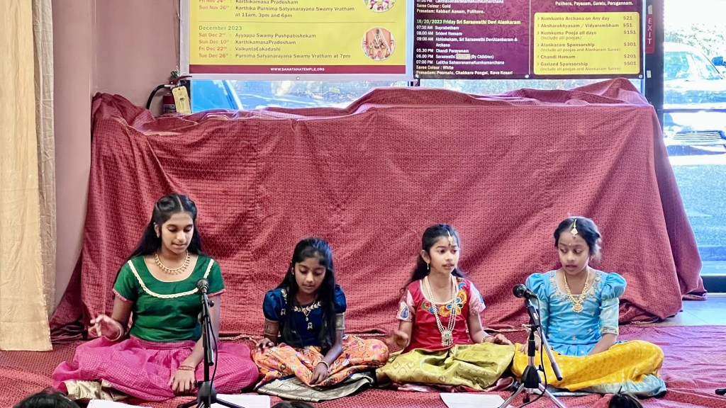 Carnatic Vidyalaya has participated and hosted numerous events, ranging from temple-sponsored showcases such as Ramanavami to large-scale galas like Annual Day. Scroll through the different performances that Carnatic Vidyalaya is proud to have been a part of below.